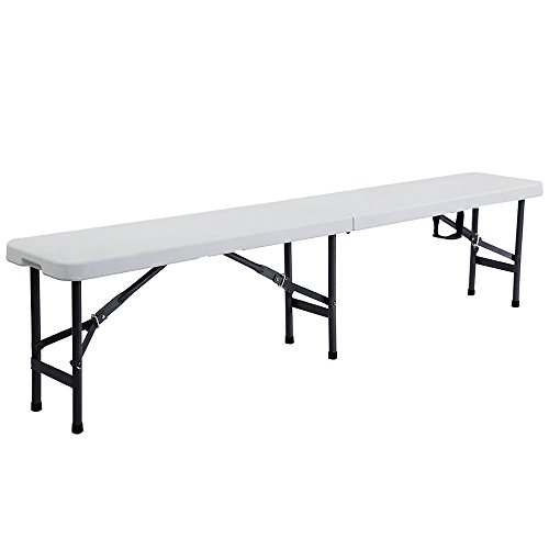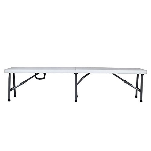 Studio : onestops8 Publisher : onestops8 Binding : Misc. Product Description The 6' Portable Plastic In/Outdoor Picnic Party Camping Dining Folding Bench is perfect for outdoor party, picnic, camping, wedding and more. It is constructed with a polyethylene top and a sturdy tubular steel frame and legs to offer high strength, water resistance, fire retardance and durability. It can be folded and extended easily provide enough space to your guests and save room for storing it under a bed or in a closet. Rubbers on the legs prevent your floor from scratches or any damage. Don't hesitate to order now!