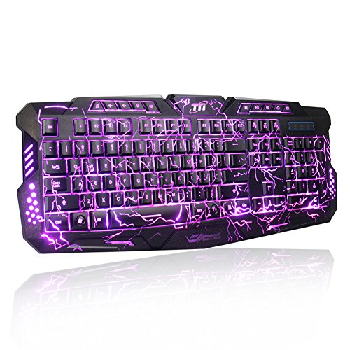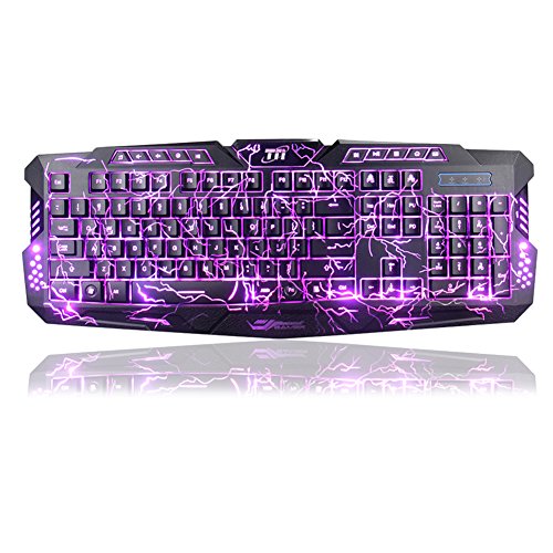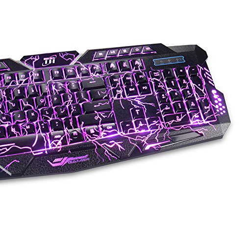 -. Feature : Close to mechanical feel keyboard fast professional gaming chip responsive key rebound and no key stuck / Cool crack version, with three backlit colors - flames red, spellfire purple, and glare blue / Support 19 keys with no conflict, 60 millions keypress life time, water resistant design / 10 Combined multimedia control keys, ergonomic button, 4 level of backlight brightness adjustment / TNI stands behind our products quality with 100% customer satisfaction and money back warranty