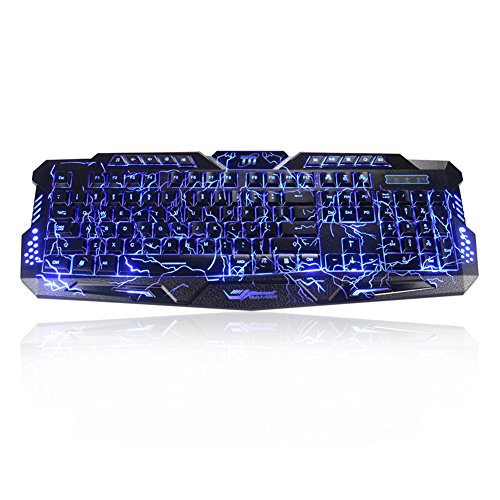 -. Title : TNI Backlit Earth Crack Gaming Keyboard, 3 Color LED Backlit, Mechanical Feel, 10 Multimedia Control Keys, 19 Keys No Conflict