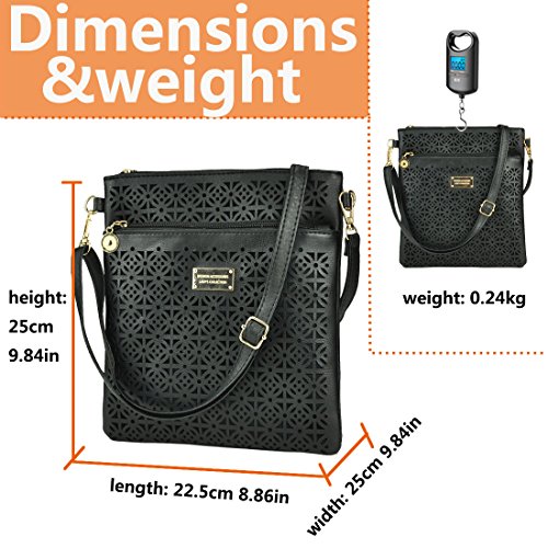 -. Feature : 9.84''(L) x 8.86'' x 0.79'' / Faux Leather & Gold tone hardware / 0.5 (bl), super lightweight. No pain in the shoulders even for a long time / 3 zip pockets (1 main pocket, 1 front pocket, 1 back pocket),Classic zippers, smooth and easy to open and close. / Adjustable shoulder strap,Can be Used as a Shoulder Bag and Handbag.Large capacity for your convenience.