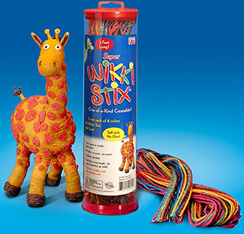 Studio : ART N CRAFT Publisher : ART N CRAFT Binding : Toy Product Description A change from messy dough and sticky clay. Wikki Stix are moldable wonders! Made of hand-knitting yarn covered in microcrystalline, food-grade, non-toxic wax. Wikki Stix can be shaped and molded to make whatever your heart desires. Completely reuseable, the three foot section lengths in Super Wikki Stix can be molded into objects, then peeled back apart for reuse! Wrap the plastic storage tube in Wikki Stix to create a towering rocket. Make animals, vehicles, buildings, letters and more... Wikki Stix are firm and sturdy, yet bend and shape to any design. 8 fun colors, 24 feet in each color. Now this is colorful, creative fun! Super Wikki Stix Creative bendable molding material Encourage sensory-awareness, creativity Featuring 8 colors in 3 feet strands 24 feet of Wikki Stix per color Create animals, shapes... anything! Never dries out, no glue, no mess Latex, gluten, nut oil free Includes plastic storage tube with cap Made in USA 0