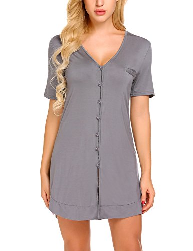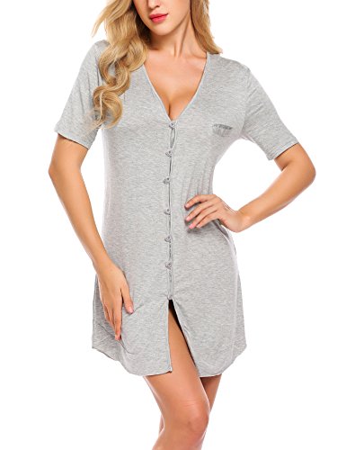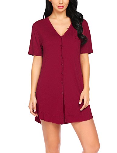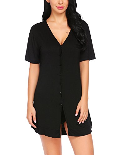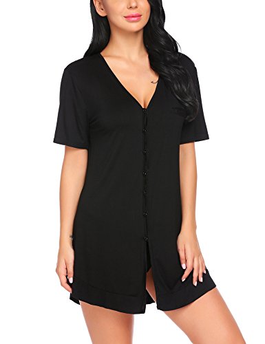 -. Title : Avidlove V Neck Sexy Sleepwear Shirts Short Sleeve Pajama Dress Button-Front Nightshirt