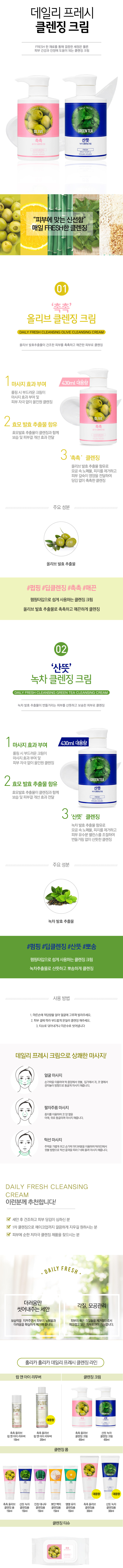 The cleansing cream containing fermented green tea extract makes oily skin fresh and soft. The cleansing cream containing fermented olive leaf extract makes dry skin smooth and moisturized.