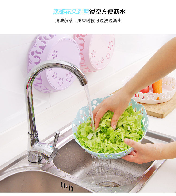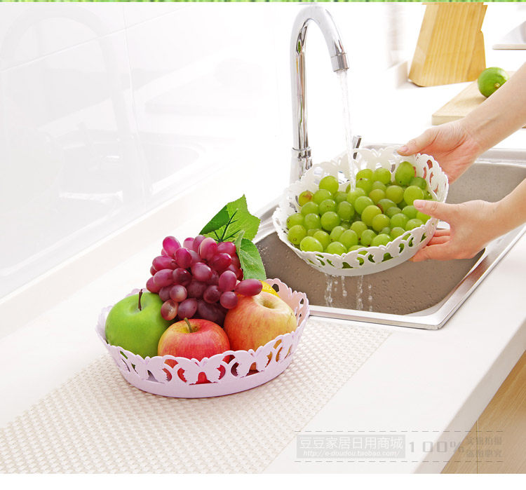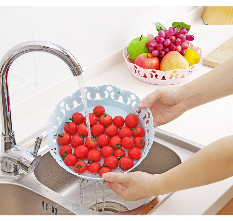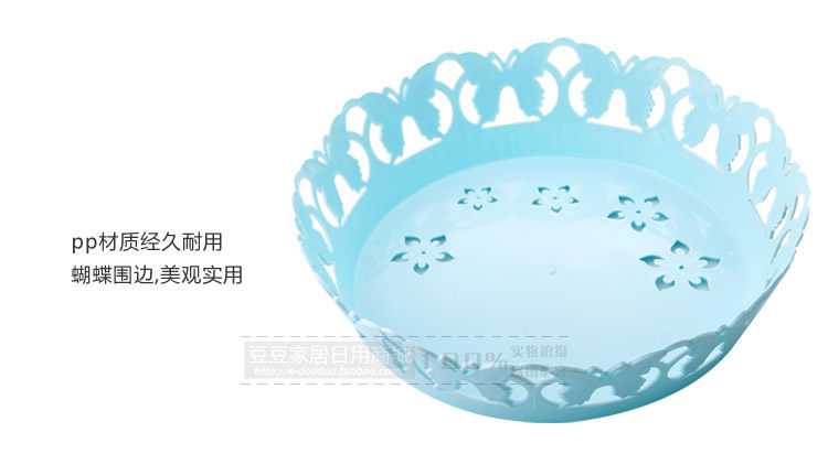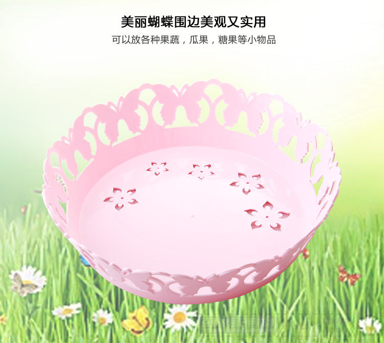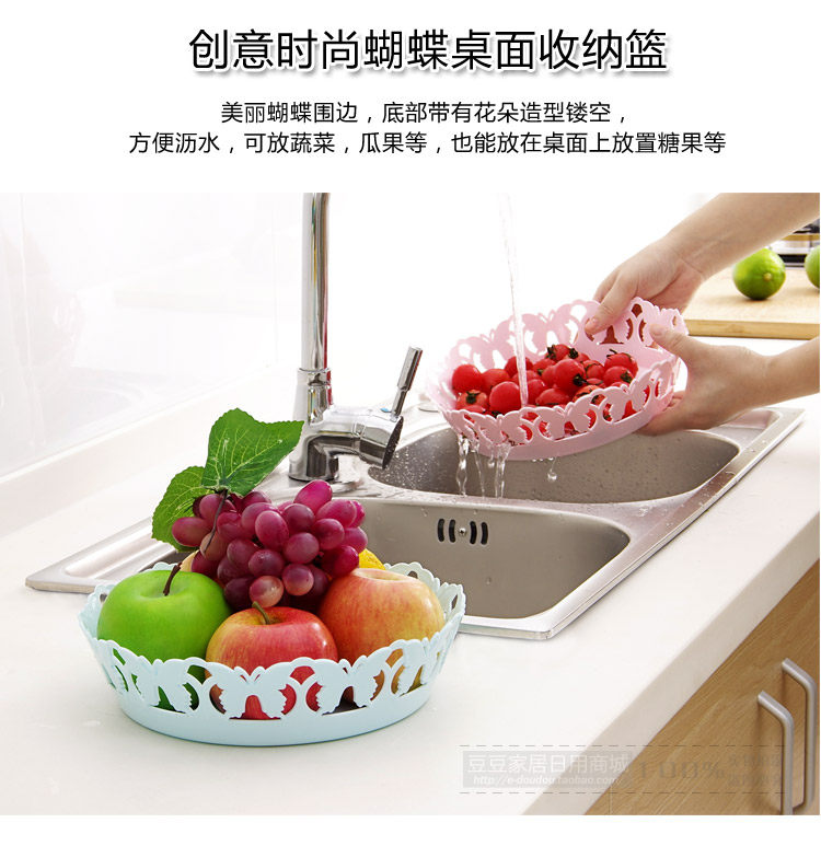 Beautiful butterfly edge, the bottom with a flower shape hollow, easy to drain; strong PP, anti-aging, can put vegetables, fruits, etc., can also be placed on the desktop candy, biscuits and other small items.
