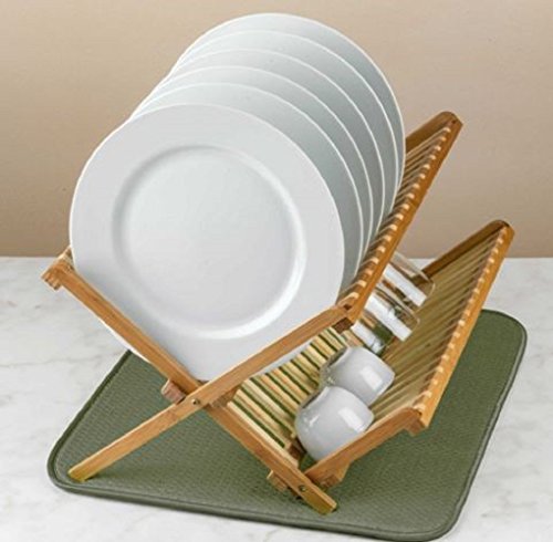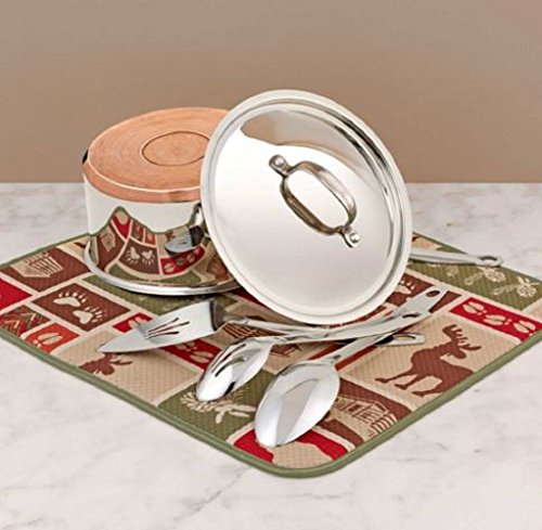 The Original Dish Drying Mat, Microfiber, Rustic Lodge, with Hand-made Dish Cloths