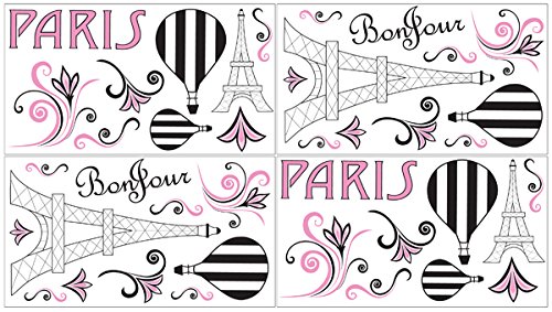 Sweet Jojo Designs 4-Piece Pink, Black and White Paris French Eifell Tower Baby, Childrens and Kids Wall Decal Stickers