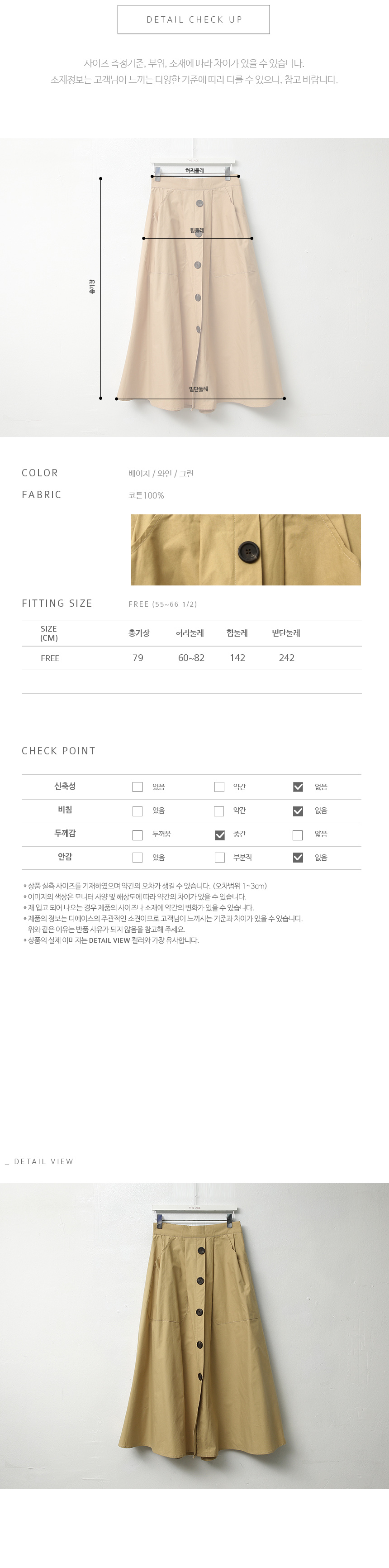레트로 무드의 여성스러운 버튼 디테일의 풀 스커트