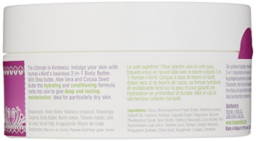 The Ultimate in Kindness: Indulge your skin with Human+Kind’s luxurious 2-in-1 Body Butter. With Shea butter, Aloe Vera and Cocoa Seed Butter this hydrating and conditioning formula melts into skin to give deep and lasting moisturisation. Ideal for particularly dry skin.