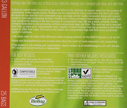 -. Title : BioBag: Food Waste Certified Compostable, 3 Gallon, 25 ct (4 pack)