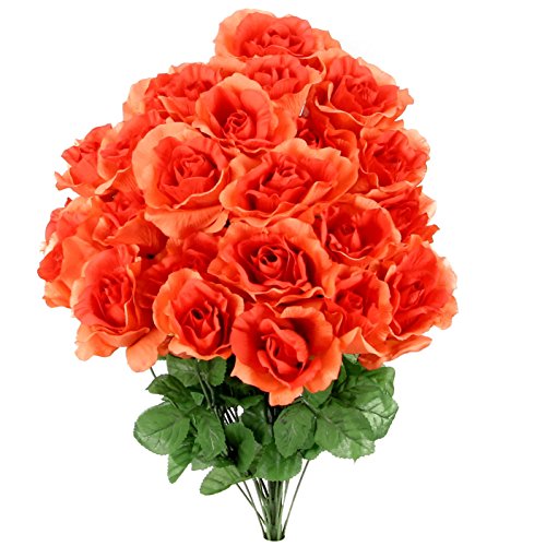 Admired By Nature GPB0399-Coral 24 Stems Rose Flowers Bush, Coral, Piece