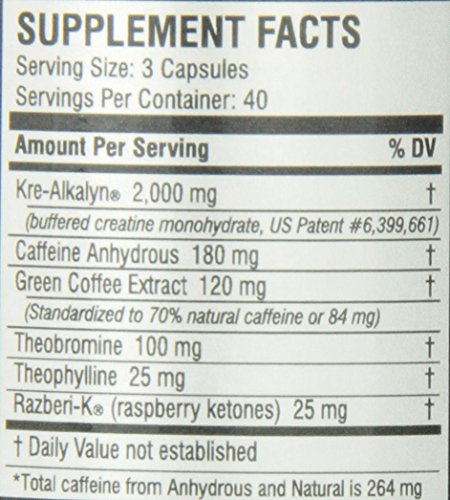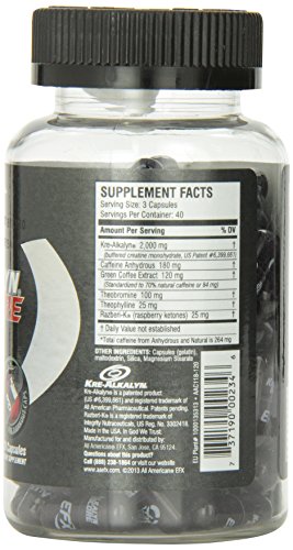 -. Binding : Health and Beauty -. Brand : All American EFX -. EAN : 0811106455331 -. Feature : Caffeine anhydrous, theobromine and theophylline to support mental and physical performance while combatting fatigue / Thermogenic, pH-correct creatine / PH-buffered creatine monohydrate -. IsAdultProduct : 0 -. Label : All American EFX -. LegalDisclaimer : Keep lid tightly closed in a cool, dry place away from children. Allergens: none. This product contains caffeine and methylxanthines. In certain people, consumption of caffeine causes serious health effects, such as anxiety, palpitations, irritability, difficulty sleeping and stomach distress. Do not exceed recommended daily dose. Do not use this product if you are pregnant or nursing. For healthy adults 18 and over. -. Manufacturer : All American EFX -. Model : 5260040 -. MPN : AA-125 -. NumberOfItems : 1 -. PackageQuantity : 1 -. PartNumber : AA-125 -. ProductGroup : Health and Beauty -. ProductTypeName : HEALTH_PERSONAL_CARE -. PublicationDate : 2014-10-02 -. Publisher : All American EFX -. ReleaseDate : 2014-09-29 -. Size : 120 Capsules -. Studio : All American EFX -. Title : All American EFX, Kre-Alkalyn Hardcore 120 Capsules -. UPC : 737190002346