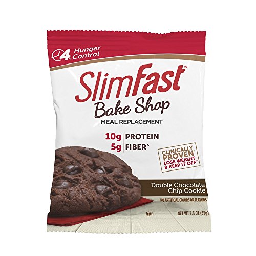 -. Binding : Health and Beauty -. Brand : Slim-Fast -. EAN : 0008346804030 -. Feature : DELICIOUS TASTE: Who said chocolate can't be a part of a healthy diet. With SlimFast Double Chocolate Chip Cookie you can indulge in healthier versions of your favorite sweets / Control Hunger For Up to 4 Hours: Help curb even your most intense cravings with delicious and satisfying SlimFast Bake Shop Cookies. They are packed with protein and fiber to help you feel satisfied / On The Go Meal Replacement: Packed with 10g of Protein and 5g of Fiber SlimFast Bake Shop treats are meal replacements and easy to grab on the go, helping you stick with the SlimFast Plan / Clinically Proven: It Works! 50 clinical studies prove the SlimFast Plan helps you effectively lose weight, You can see results in just 1 week!* / Naturally Flavored, Gluten Free, No Artificial Colors or Flavors -. IsAdultProduct : 0 -. Label : Slimfast -. Manufacturer : Slimfast -. NumberOfItems : 1 -. PackageQuantity : 1 -. ProductGroup : Health and Beauty -. ProductTypeName : HEALTH_PERSONAL_CARE -. PublicationDate : 2017-09-25 -. Publisher : Slimfast -. ReleaseDate : 2017-09-25 -. Studio : Slimfast -. Title : SlimFast Bakeshop, Meal Replacement, Double Chocolate Chip Cookie, With 10g Of Protein & 5g Fiber, 2.4 Oz, 4 Count -. UPC : 008346804030