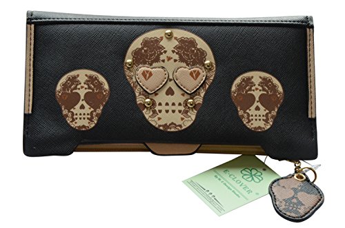 Cool Skull Purse for Ladies Cute Clutch Wallet with 18 Card Slots (Black)