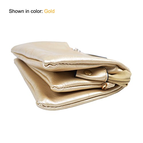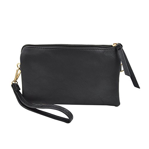 -. Brand : TrendsBlue -. Department : womens -. Feature : Durable soft PU leather wallet wristlet crossbody bag / Fully lined with top zip closure. 2 main compartments, 1 middle zipper pocket, 2 slip pockets with 6 card slots. / 2 Removable straps: one 7" wristlet strap and one adjustable hideaway shoulder strap up to 26" drop. / 8.5" (L) x 5.5" (H) x 2" (W) / High quality with elegant design and roomy storage space. Stylish and functional, great for both day and night use. -. Model : BAF695 -. ProductGroup : Shoes -. ProductTypeName : HANDBAG -. Size : One Size -. Title : Premium Soft PU Leather Solid Color Clutch Wristlet Wallet Crossbody Bag