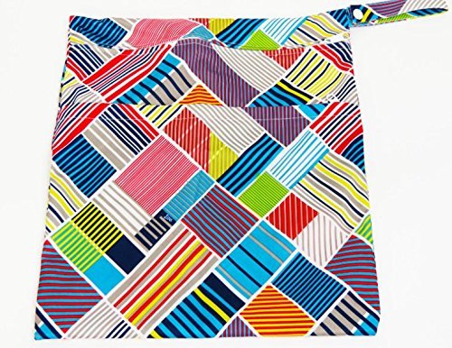 Geo Square Double Zippered Waterproof Reusable Washable Two Pocket Wet/Dry Swimsuit Diaper Bag