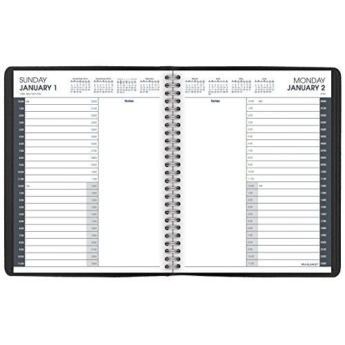 -. Feature : 24 hour Daily Appointment Books help you manage your schedule and covers 12 months, from January through December. Julian dates. / One day per page spread features large ruled blocks and hourly appointments from 12:00 a.m. to 11:00 p.m. every day of the week, including weekends, help you manage your 24 hour schedule each day in military and standard times. / Each day features a large unruled notes section along the inner page margin for quickly jotting down notes, to-do's and important information / Reference calendar blocks along the top of pages include two past, current and five future months for quick date checking / P.R.Inted on quality paper containing 30% post-consumer waste recycled material. Page size, 6.88 in. x 8.75 in., overall size 7.75 in. x 9.25 in. x .88 in. Planner is wirebound with a black, simulated leather cover.