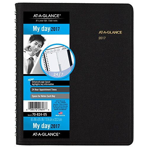 -. Title : AT-A-GLANCE Daily Appointment Book / Planner 2017, 24 Hour, 6-7/8 x 8-3/4", Black (70-824-05)