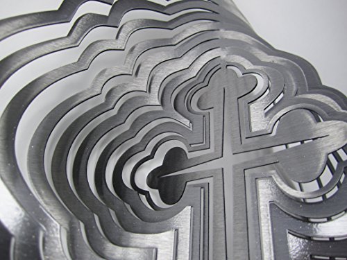 12" 3D Wind Spinner Silver Cross Metal Reflective Yard Art Lawn Twister with Smooth Swivel