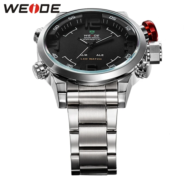 상품 내용 특징: -모든 웨이드 (WH2309) 아날로그-디지털 LED 디스플레이 스포츠 시계 6 버전에서 사용할 -고급 제조 기술 환경 IP 도금, 패스 ROHS 표준 -모든 스테인레스 스틸 버클 손목 -원래 미요 2035 석영 운동 S626 배터리 -시계 크라운 환경 IPS 청동 전기 도금 실제 다시 스테인레스 스틸 케이스 하이테크 레이저 로고 시간, 둘째,, 날짜, 주 알람 기능 -작동 온도:-10 ° C + 50 -산책 오류 ± 45 S/M -30 메터 물 저항하는 (마십시오 프레스 어떤 키 수중) 원래 공장 품질 보증 밴드 재질: 스테인레스 스틸 배 넘 버클--안전 사양: 케이스 직경: 4.95 센치메터 케이스 두께: 1.5 센치메터 밴드 길이: 20.5 센치메터 밴드 폭: 2.2 센치메터 부품 포함: -1 x 웨이드 시계 -1 x 선물 상자 -1 x 사용자의 수동 대한 배송 주문 이내에 배송됩니다1-3 일검증 후.