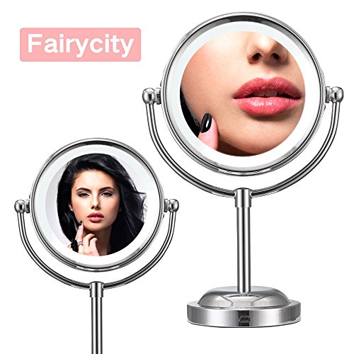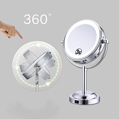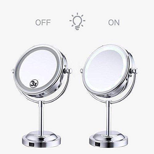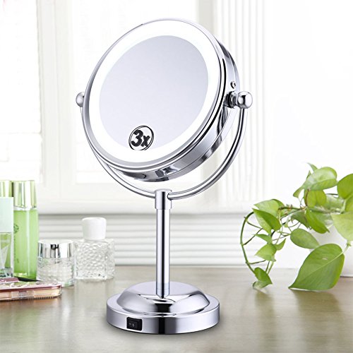 LED Lighted Makeup Magnification Mirror 6" 3X Magnified Double-Sided Round Magnifying Mirror Standing 360 Degree Swivel Daylight Tabletop Vanity Mirror Battery and USB Operated By Fairycity