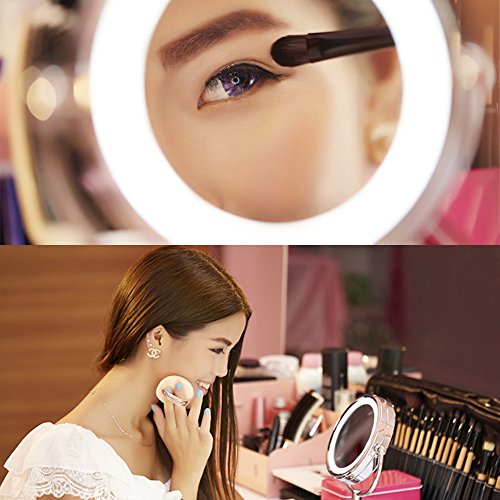 - ❤EASY TO USE AND CARRY AROUND-This makeup mirror is detachable you could carry anywhere during traveling. Smooth 360 degree swivel design on makeup mirror ensures that every angle is covered and glorious. Spin the mirror and angle it at any position to obtain the best angle for different makeup needs. Two sided mirror with 3x magnifying can help you to make up in lots of details. Used as eye makeup mirror, eyebrow, face hair shave, acne blackhead removal