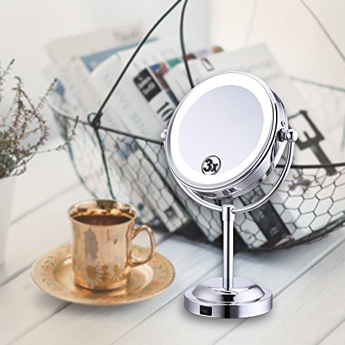 - ❤GIFT FOR WOMEN MOM GIRLS DAUGHTER AS WELL AS MEN-You've got the right idea if you're thinking about giving a super helpful makeup mirror as a gift. This light up mirror will be a great choice, and suitable for all ages. Great gift choice with silver polished chrome. Battery operated makeup mirror lets you get rid of the power limit, so you can make up in the living room, bedroom, bathroom,powder room or anywhere