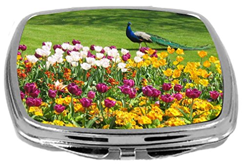 Rikki Knight Compact Mirror, Peacock On Tulips Background