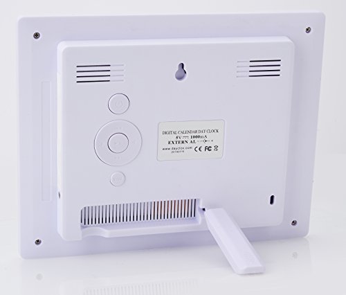 What makes this DayClox day clock so unique is that both the DAY and the MONTH are fully spelled out! Many elders suffering from memory loss due to stroke, dementia, Alzheimer's or just advancing years, may have difficulty processing abbreviated words. Most clocks available today will abbreviate the month & the day. For example, November becomes NOV and February is FEB. The same is true for days of the week - Wednesday, is often displayed as WED and Saturday as SAT. This may be fine for the rest of the population, but for our loved ones with Dementia, early stages Alzheimer's or just simple advancing years, these abbreviations are often too confusing to process. This day clock displays complete words only, no abbreviations. This clock bold and clear display is a great for elderly or vision impaired. The multi language feature of this digital clock can be configured for 8 different languages - English, Spanish, French, German, Italian, Polish, Dutch & Welsh. This quiet reminder clock or 8" Digital Calendar Day Clock has the clearest and easiest to read display available. This clock has everything! It displays the full DAY, TIME and DATE and it's not just for people with memory loss or as a Dementia aid. Anyone can enjoy this wonderful clock. It makes a great gift. It's sleek & contemporary design will look great anywhere in your home or office, sitting on your desk or counter or wall mounted for everyone to enjoy. The Dementia Clock can be viewed as a dementia aid, Dementia product or even an Alzheimer's product. It assists Dementia patients or early state Alzheimer's patients. This day clock is a self-help tool for people who get confused with abbreviations. It helps with Dementia care or Alzheimer's care. Serves as a Dementia desk clock, dementia wall clock, Alzheimer's clock or as a digital clock. This calendar date clock is wall mountable and can be used as a wall clock or used as a desk clock.Feature