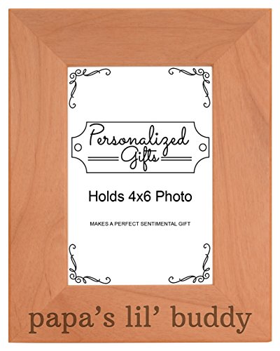 Grandpa Gift Papa's Lil' Buddy Grandson Natural Wood Engraved 4x6 Portrait Picture Frame Wood