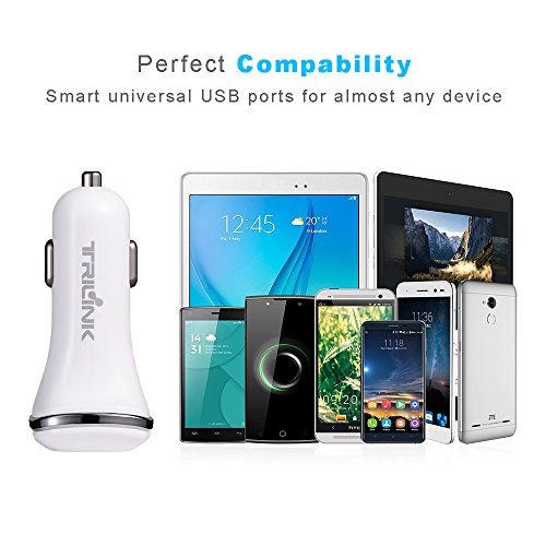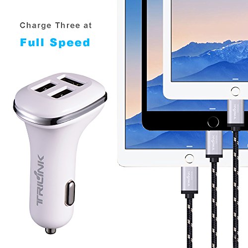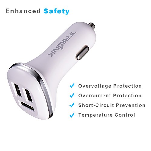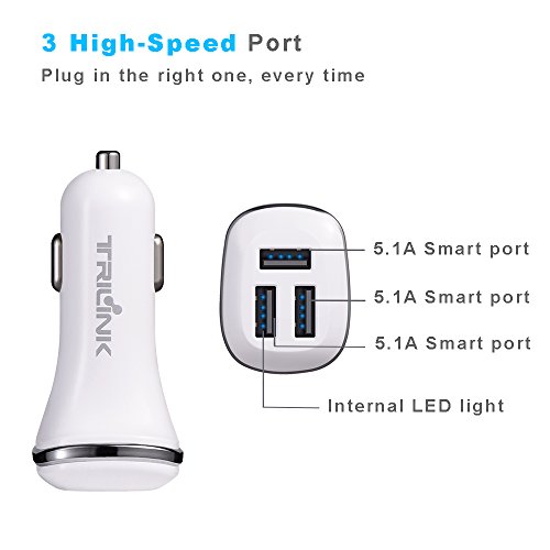 USB Car Charger, TriLink 5.1A/25W 3-Port Universal Charging Adapter for iPhone iPad Samsung and More White