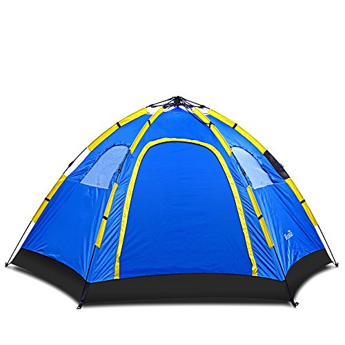 -. Title : Instant Family Tent - 4 Person Large Automatic Pop Up for Outdoor Sports Camping Hiking Travel Beach with Zippered Door and Carrying Bag in Blue