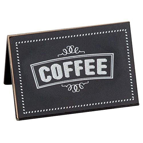 Studio : TableTop King Publisher : TableTop King Product Description Keep your offerings organized and labeled properly at your buffet line with this TableTop King 3047-1 chalkboard beverage sign with "coffee" print! This versatile 3" x 2" tent has a trendy and contemporary chalkboard surface area to complement any decor. Featuring a pre-printed dotted border for enhanced appearance, the TableTop King 3047-1 chalkboard "coffee" tent is perfect for labeling freshly-brewed hot or iced coffee at your salad bar, reception, cocktail hour, buffet, or other service line. Unique and convenient, this stylish chalkboard tent is a smart addition to any venue!