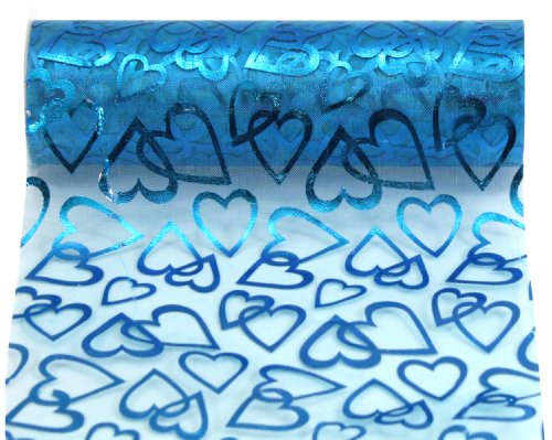 Kel-Toy Heart Print Sheer Fabric, 6-Inch by 10-Yard, Ice Blue with Hearts