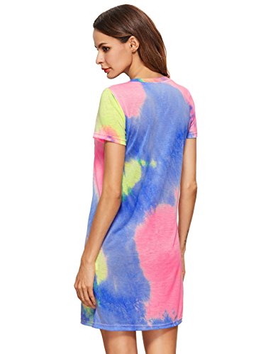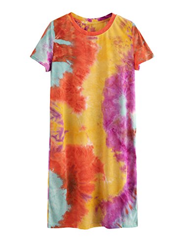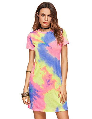 Style: t-shirt dress, tie dye dress, mini dress, short dress, Short Sleeve Tie Dye Ombre Dress.