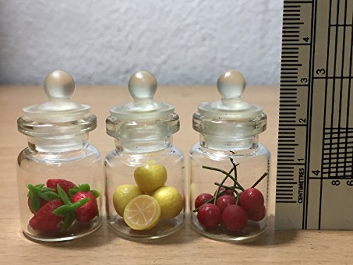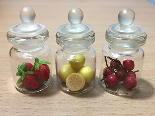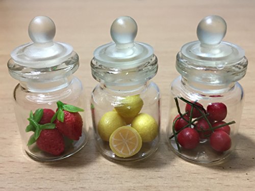 3PC MINIATURE FRUIT FOOD VEGETABLE DOLLHOUSE FRUIT IN CLEAR GLASS MINI BOTTLE FRUIT MIX LEMON #MF005