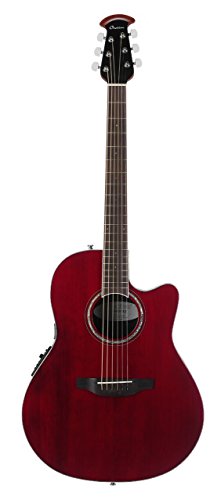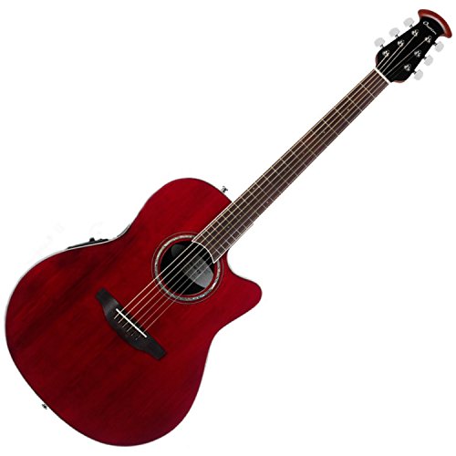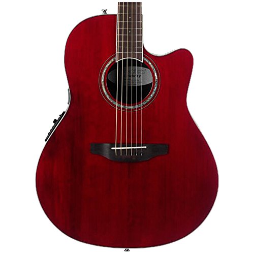Studio : Ovation Guitars Publisher : Ovation Guitars Binding : Electronics Product Description The Celebrity Standard series is your first step into the world of Ovation, with first-rate sound, style, features and value. The Celebrity Standard CS28-RR guitar has the classic Super Shallow Lyrachord cutaway body with a solid spruce top featuring quartersawn scalloped “X” bracing. We reviewed earlier Ovation bracing patterns extensively to arrive at this remarkable new design, which borrows from the past and is voiced for the present with natural tone and optimal response and power. Together, body and top create the classic Ovation sound, resonating with full projection, remarkable note clarity and balance, and nuanced tonal complexity. The spruce top also has an elegant inlaid Pearloid rosette, ivory white binding and beautiful Ruby Red transparent finish. Other premium features include an effortlessly playable neck with a natural satin finish, gloss black headstock veneer, 20-fret bound rosewood fretboard with Pearloid microdot inlays, and a rosewood bridge. For great live sound, the CS28-RR features an Ovation Slimline pickup and OP-4BT preamp system with three-band EQ, volume/gain control, onboard and low battery light. 0