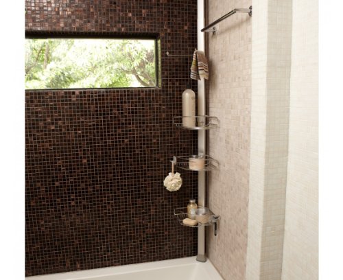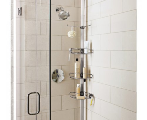 - Feature : I'm adjustable: adjustable shelves slide up and down to make room for tall bottles / Secure fit: reinforced aluminum pole with high compression spring fits securely between your floor and ceiling / No tools needed: just extend the caddy to install / Convenient storage hooks: hold a razor, loofah, toothbrush or other accessories / Quick dispensing: store bottles upside-down for quick dispensing