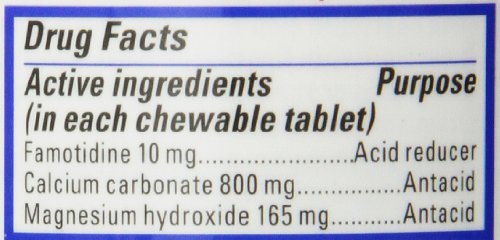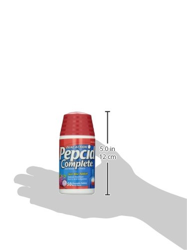 Quickly relieve heartburn associated with acid indigestion and sour stomach with Pepcid Complete Acid Reducer + Antacid Chewable Tablets. These berry-flavored chewable tablets combine a fast-working antacid and a long lasting acid reducer to help control acid all day and night.* The dual-action formula starts neutralizing acid in seconds and lasts longer, so you don't have to choose between hurting now or hurting later. * Based on 9-hour acid control studies during the day and 12-hour acid control studies during the night. Acid control does not imply symptom relief.Feature