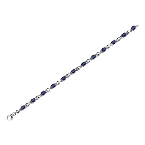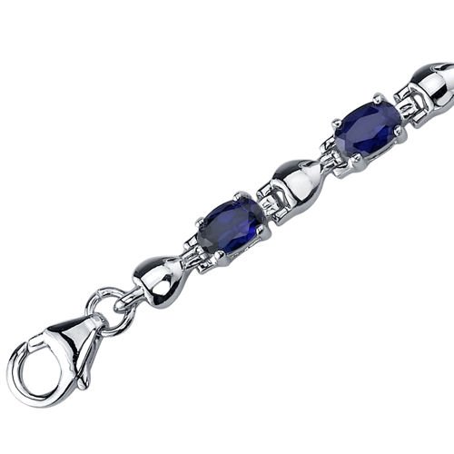 Gemstones: Lab Created Blue Sapphire: 12 pieces, Oval Shape, 6x4 mm. Gemstones have a deep rich color and tremendous fire. Bracelet: 11.20 grams Pure Sterling Silver Rhodium Nickel Finish with .925 stamp 7 1/4 length, 1/8 width. Bracelet features one of a kind design with a beautiful White Gold finish. 100% Money Back Guarantee. Includes a Signature Gift Box.Feature