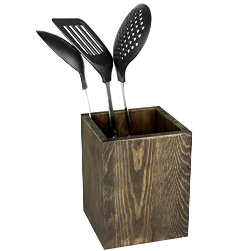 Coffee Brown Wood Kitchen Storage Utensil Crock, Countertop Cooking Tools Holder