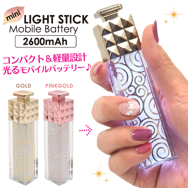 | ボディが光る! コスメみたいな2600mAhライトスティック型モバイルバッテリー |