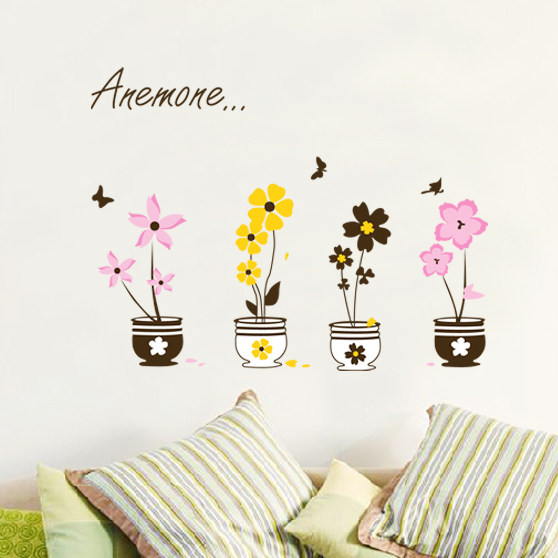 芳草小花盆栽可移除墙贴卧室浪漫家装客厅儿童房踢脚线家居墙贴纸