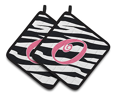 Caroline's Treasures Monogram Initial O Zebra Stripe & Pink Pair of Pot Holders CJ1037-OPTHD, 7.5HX7.5W, Multicolor