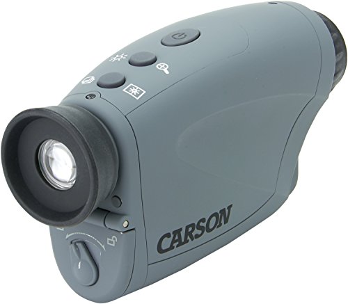 - Feature : Digital Night Vision Monocular with 2x and 4x magnification / Use with ambient light or in total darkness with a built-in Infrared Illuminator / Range is 229 feet in total darkness; 8.5 degree Angle of View / Uses 3 AAA batteries (not included); Convenient wrist strap and carrying pouch included / Backed by Carson's One Year Limited Warranty