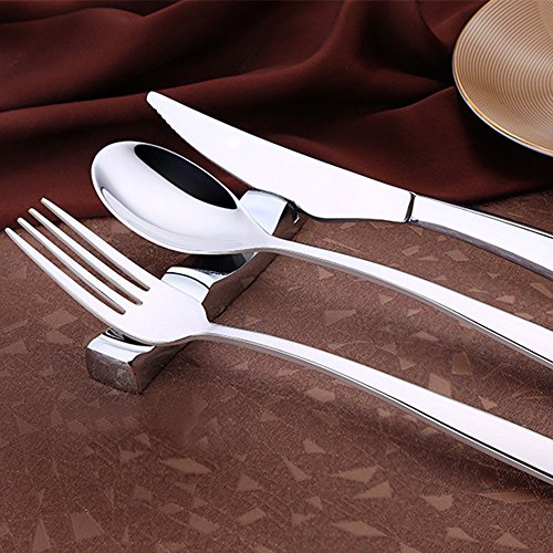 5 Pieces in 1 Set: The dinnerware set serves for 1 person, dishware containing a serving soup spoon, a teaspoon, a knife and a Fork.