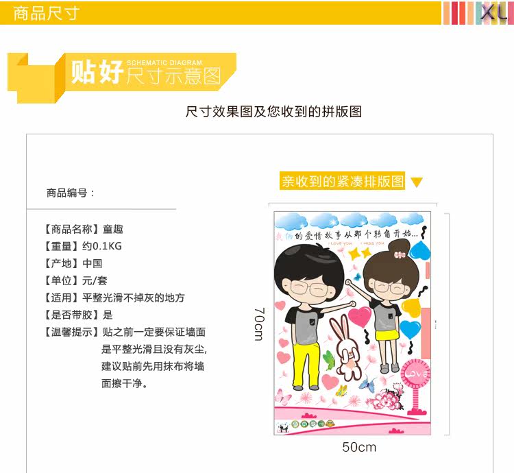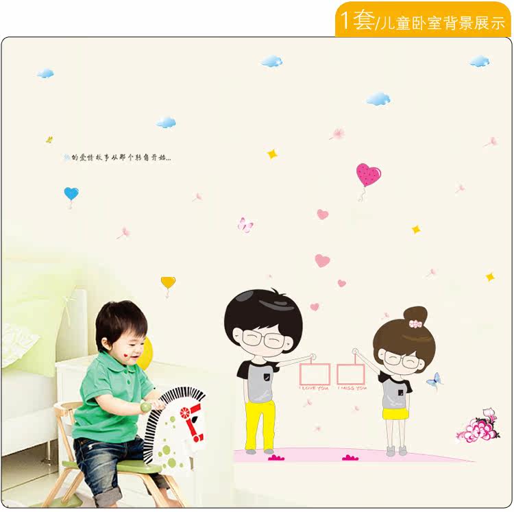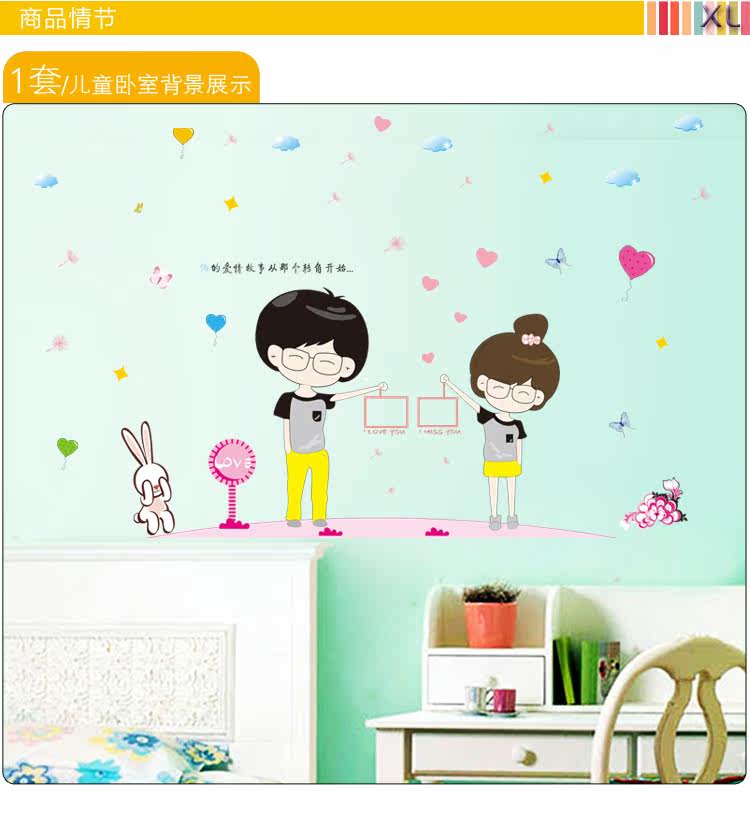 卡通浪漫情侣卧室自粘墙纸贴画可移除创意防水墙壁墙上装饰墙贴纸