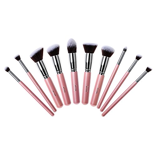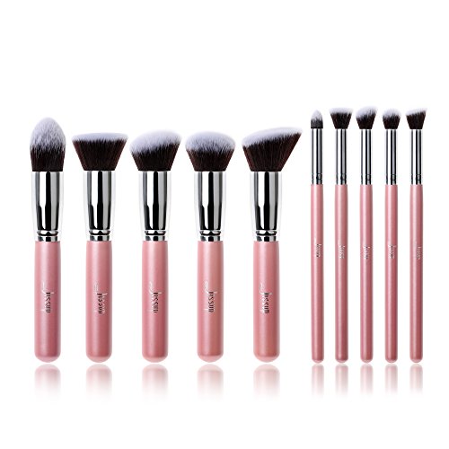 Jessup Kabuki 10pcs Pink/Silver Cosmetics Makeup Brush Tools kit Buffer Eyeliner Blending Eye Concealer Power Foundation Handmade Fiber Hair Brush Set T068