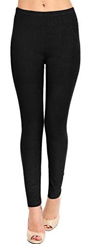 Regular Size Full Length Solid Brushed Leggings (Black)