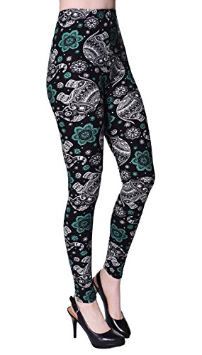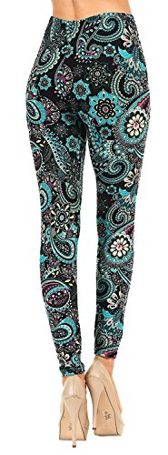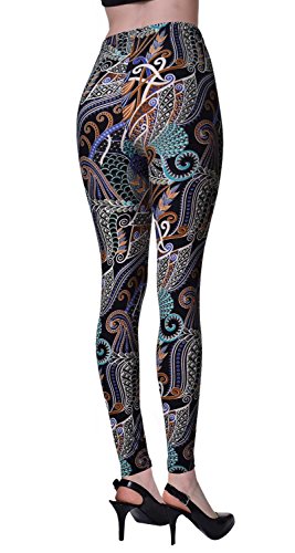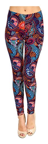VIV Collection Regular Size Printed Brushed Leggings (Dragon Tail Paisley)
