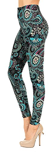 VIV Collection Regular Size Printed Brushed Leggings (Underwater Paisley)